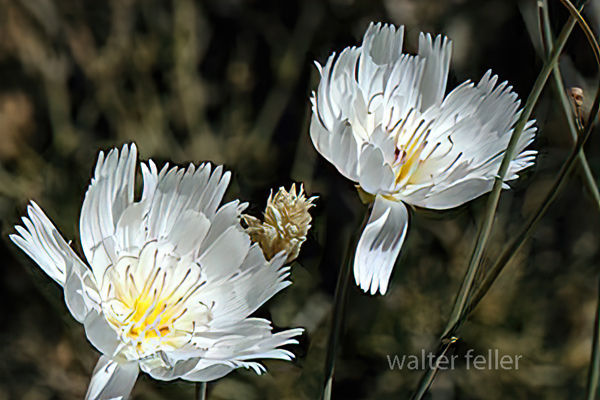 Tobacco WeedAtrichoseris platyphylla![]() Height: 1 to 2 feet tall Habitat: Gravelly or sandy desert soils, often on open slopes or flats Elevation: Found below 4,000 feet Range: Southwestern United States and northern Mexico—especially in the Mojave, Sonoran, and Colorado Deserts Description: Tobacco Weed is a spring-blooming annual with large, gray-green basal leaves that can look a bit like tobacco leaves—hence the name. Its flower stalks rise above the leaves, topped with pale pink to lavender blooms, each marked with darker stripes. Though part of the sunflower family, its flowers have a soft, almost dreamy look. Uses: While not commonly used for food or medicine, it's part of the spring wildflower display in desert regions and supports native insects. The leaves and flowers were noted by early observers for their unusual appearance. Note: Tobacco Weed is one of those desert surprises—plain at first, but striking once it blooms. It grows quickly after winter rains and vanishes when the heat returns, leaving behind a memory of soft color and wide leaves. Atrichoseris platyphylla, known by the common names tobacco weed, parachute plant, and gravel ghost. |
